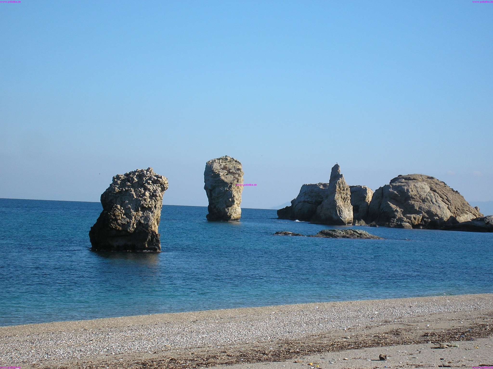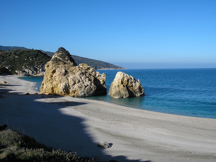 Am Ausgang des kleinen Flusstales Potistika liegen einige der schönsten Badebuchten Griechenlands. Kristallklares Wasser, Sand und feiner Kies, umrahmt von Felsen, Olivenhainen, Schilf und Makia, laden an diesen Stränden zum Baden ein. Mit Ausnahme der Wochenenden der griechischen Hauptferienzeit Mitte Juli bis Ende August sind die Strände oft nur von wenigen Badegästen besucht. In den Monaten April - Juni und September - Oktober kann man neben dem meist schönen Wetter auch die Abgeschiedenheit der Strände fast alleine genießen.