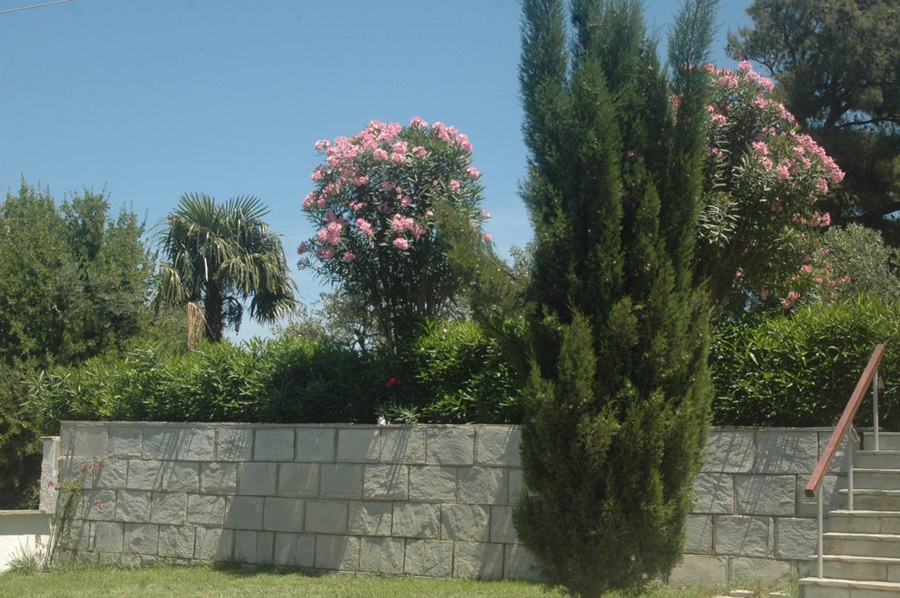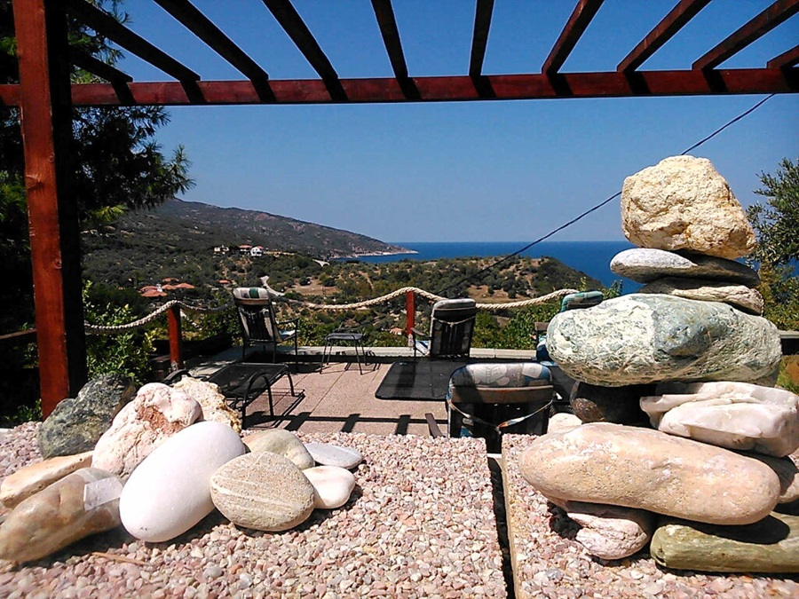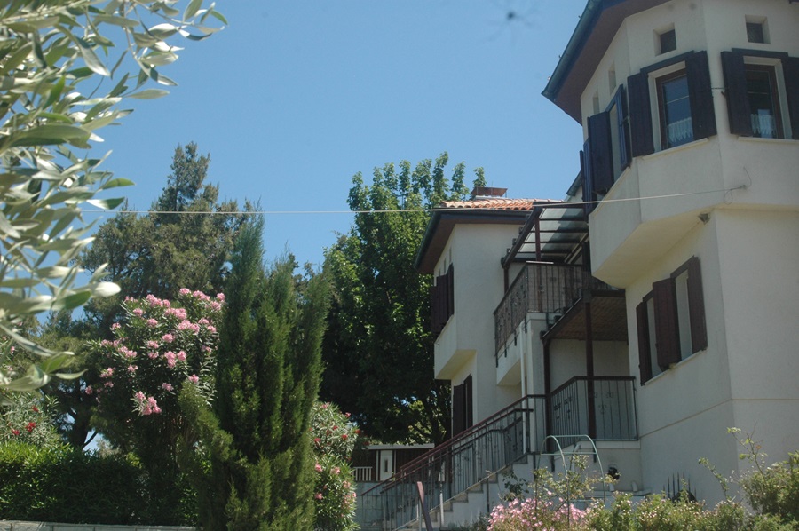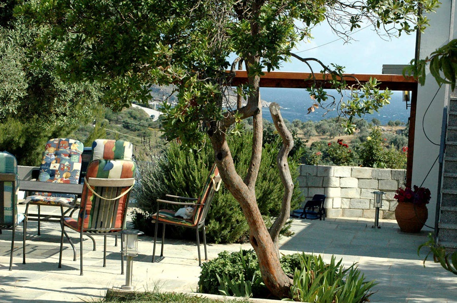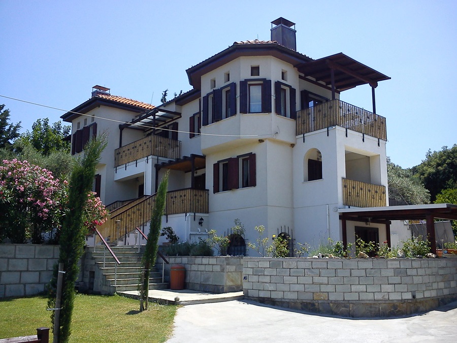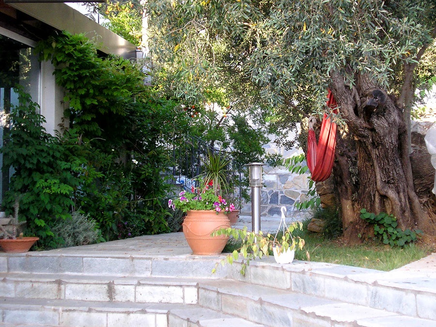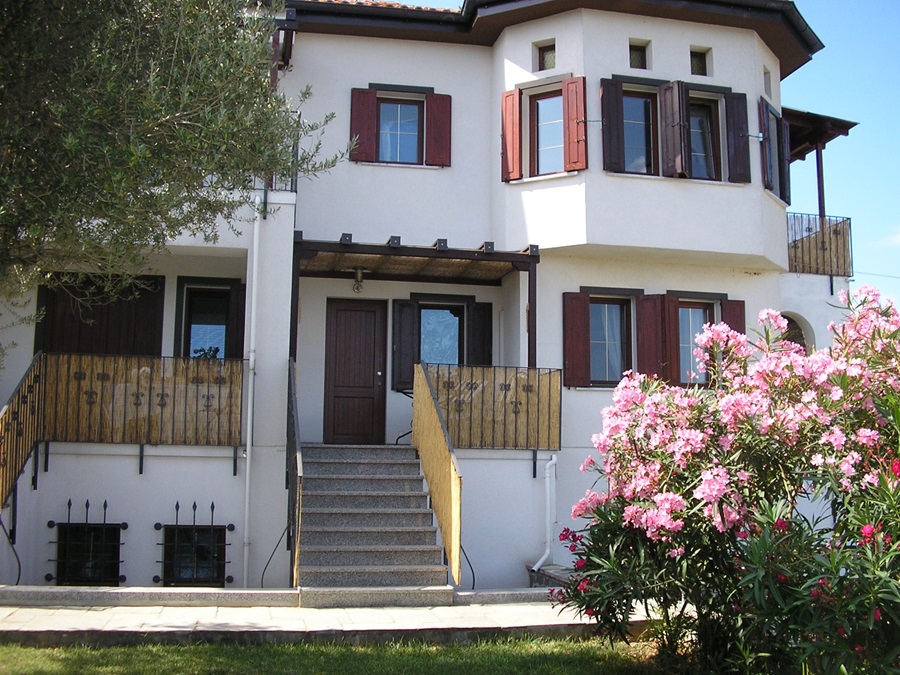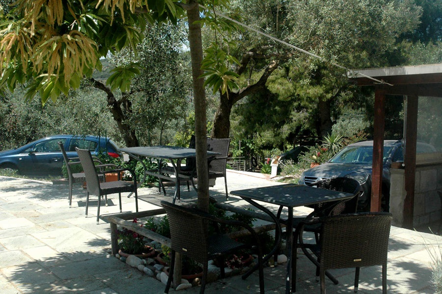 Im Aussenbereich der Villa gibt es eigene Parkplätze, Liegewiesen, Gartenmöbel, Liegestühle, Elektrogrill, etc. Sie haben auch vom Garten aus einen sehr schönen Meerblick auf die Ägäis. Jede der fünf Ferienwohnungen der Villa Athina besitzt einen eigenen separaten Außeneingang. Von den Apartments aus hat man einen phantastischen Ausblick auf die Ägäis und den Pilion , bei sehr guter Sicht kann man selbst das Athosgebirge sehen. Alle unsere Ferienwohnungen haben mindestens eine überdachte, abgeschirmte Terasse oder Balkon.