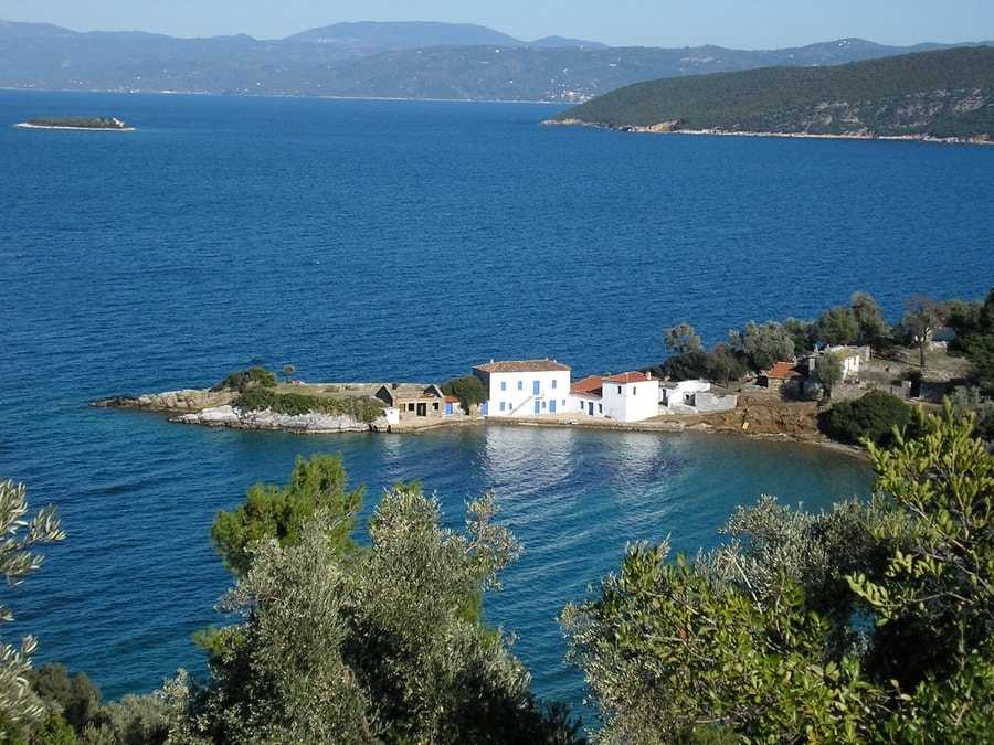 Die Sommerresidenz der griechischen Götter (Homer) ist eine Halbinsel umgeben