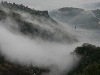 Kastanien,Obstbäume,Felsen,Bäche und Quellen prägen die Landschaft. Dörfer